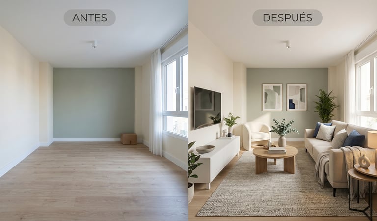 Amueblado virtual realista para mostrar el potencial del espacio.